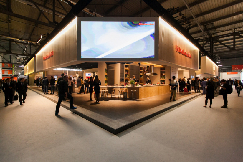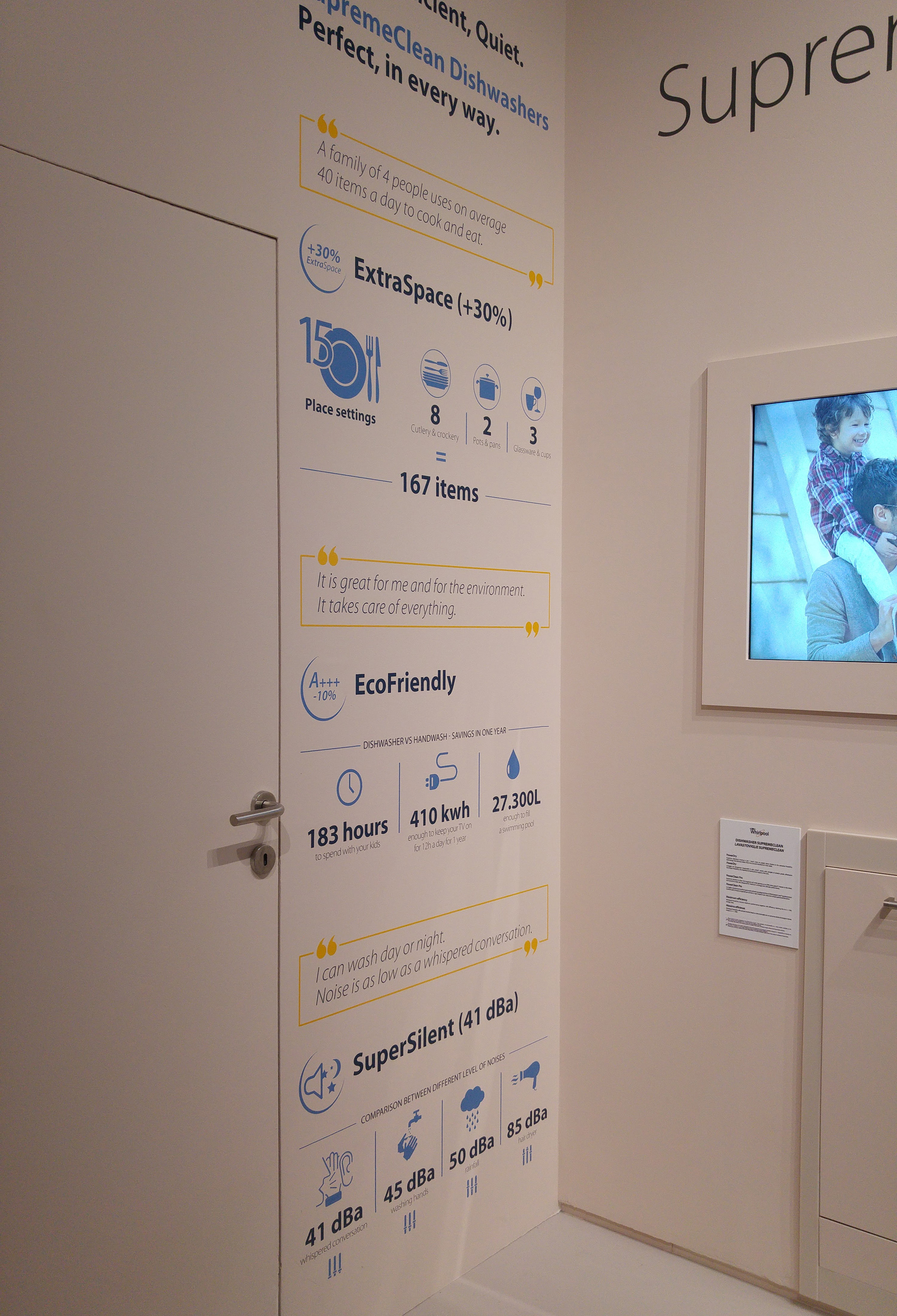 Grafiche di allestimento per lo stand del gruppo Whirlpool Corporation. Lo stand è formato dai 4 corner dei brand, ogni corner è stato personalizzato graficamente. Ho seguito tutta la fase di produzione.